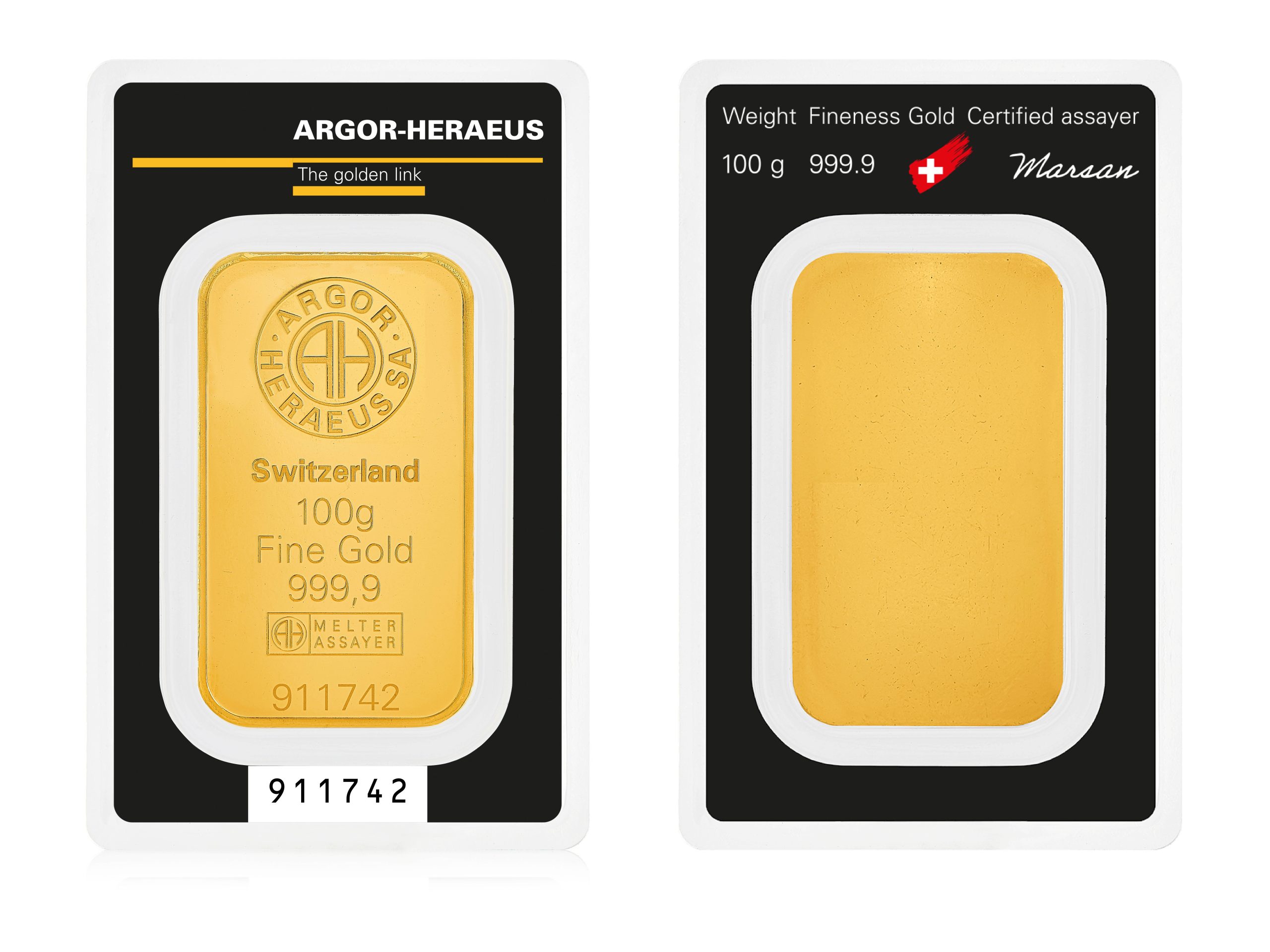 Zlatna poluga od 100 grama proizvedena u švajcarskoj rafineriji ARGOR-HERAEUS je najbolji izbor za diversifikaciju imovine na putu za ostvarenje finansijske sigurnosti. Što znači posedovati količinu investicionog zlata za pokriće šesteromesečnih troškova i potreba, kao npr. neplaniranih troškova poput iznenadne bolesti, lečenja ili slično. Dakle vrednost u zlatu koja sprečava da neplanirano uletimo u dugove, a niti u očaj. Poluga se nalazi u originalnoj vakumiranoj i plastificiranoj ambalaži (takozvani „blister“) što istovremeno predstavlja i sertifikat.